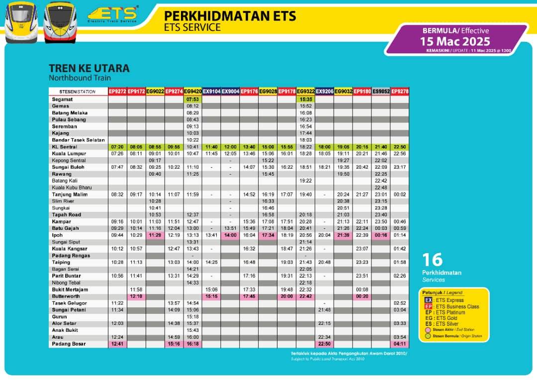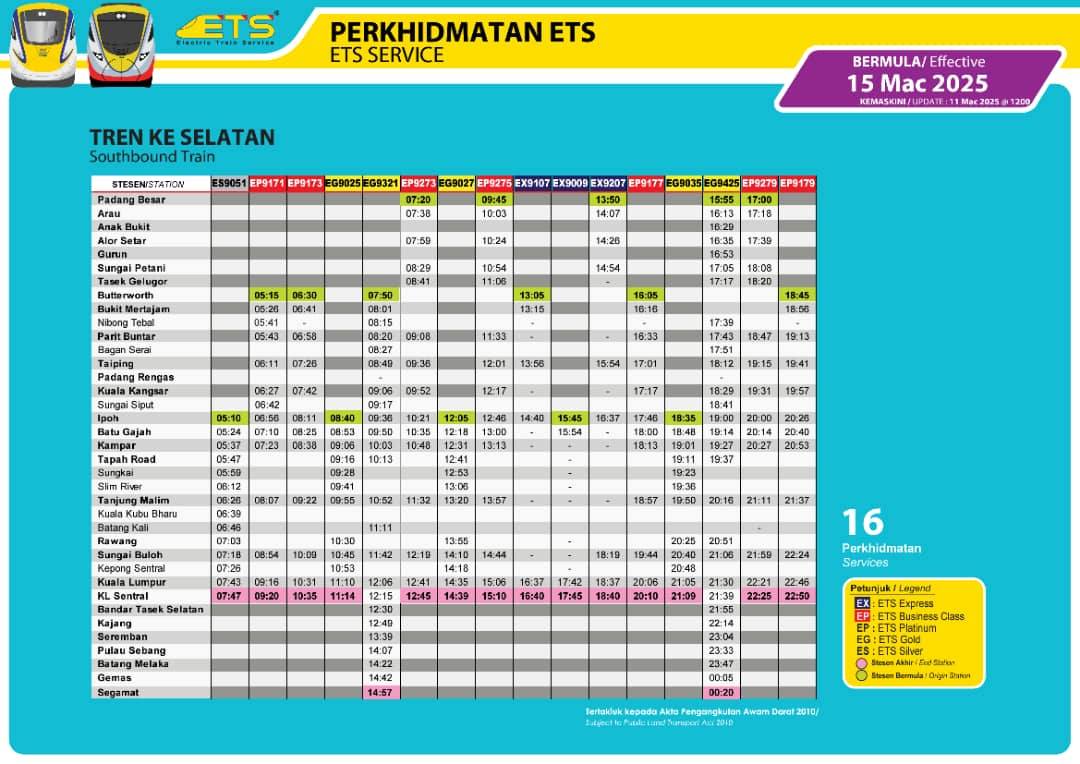 “Selain itu, penumpang juga boleh membuat perjalanan dari KL Sentral – Segamat dengan kadar tambang bermula dari RM34 sehala.
