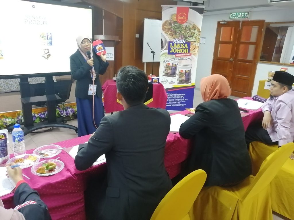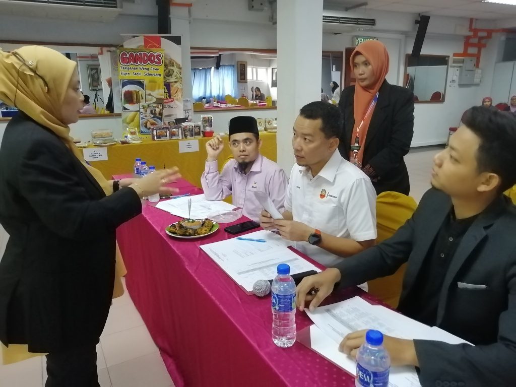Pengusaha perniagaan ayam percik dan sambal kacang, Siti Nooridayu Parman menerangkan produk keluaran syarikatnya, Aisydina Agrofarm kepada para penel penilai.